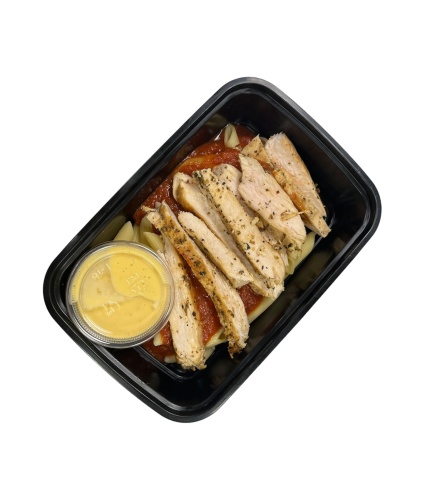 INGREDIENTS: PASTA SAUCE, CHICKEN, PENNE RIGATE, GARLIC PARM SAUCE, ITALIAN SEASONING (MARJORAM, THYME, ROSEMARY, SAVORY, SAGE, OREGANO, BASIL)